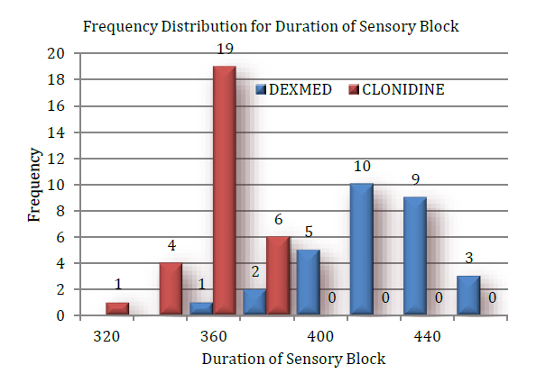 The duration of sensory block in Group A was 8.37±0.99 minutes (Mean S.D.), but it was 7.13±0.81 minutes in Group B, which is statistically significant (p-value of 0.05)