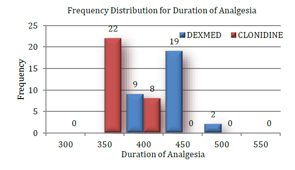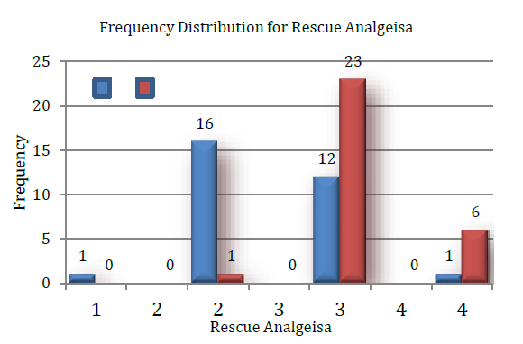 Intra-op supplementary medications were not used in group A patients while in group B 6 out of 30 patients received intra-op supplementary medications i.e., Inj. Fentanyl. “p value” on comparison was 0.009 which was statistically significant