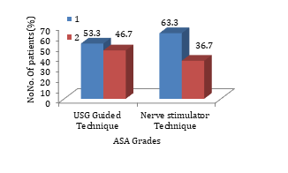 ASA Grade | USG Guided Technique | Nerve stimulator Technique | Chi Square Test | p-Value | ||