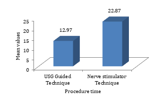 Procedure Time | USG Guided Technique | Nerve Stimulator Technique | p-Value | ||