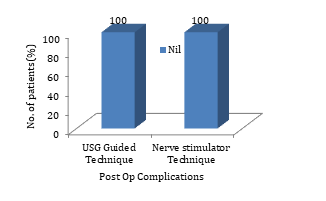 Post Op Complications | Usg Guided Technique | Nerve Stimulator Technique | p-Value | ||