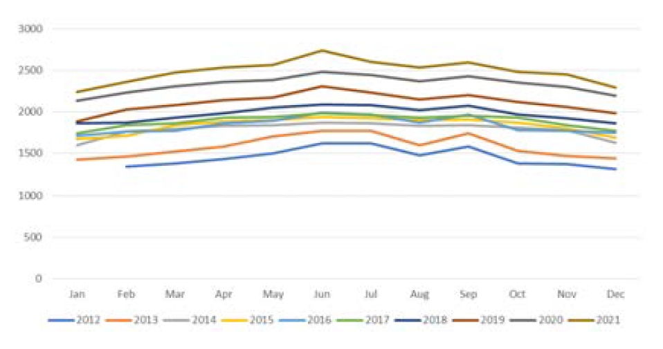 Through the application of forecasting techniques, we have data for the next 12 months. The output of the forecasting model will be the input for the inventory planning model.