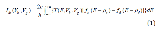 The simulation of transport properties is conducted using the DFT in conjunction with a nonequilibrium Green's function technique, as applied via the Atomistix ToolKit [15,16]. The drain current Ids at a specific bias/gate voltage Vb/Vg is computed using Landauer-Büttiker formula [17]: