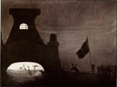 Figure 2: Symbolic Scene of Figures Entering a Fiery Furnace under a Darkened Sky, Artist: Alfred Kubin, Title: Gate of Hell, Year of Production: 1900, Dimensions: 17 x 23 cm, Technique: Watercolor on paper, Provenance: