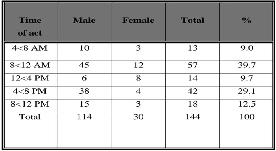 Figure 5: Distribution of suicide cases according to time of act of suicide