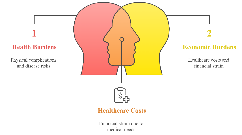 Weak primary healthcare systems | Delayed diagnosis, limited access to preventive services | Increased hospitalizations, higher long-term costs |