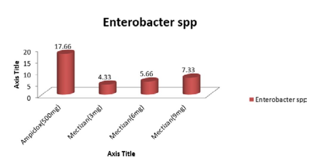 The result of the study indicates that the different doses of Mectazin tablet possess therapeutic (inhibitory) potentials on the different bacteria. This is in agreement with the findings of Ashraf et al, 2012 who also observed that ivermectin exhibited a potent anti-staphylococcal activity at the concentrations of 6.25 and 12.5 μg/mL against the two tested isolates used in their study.