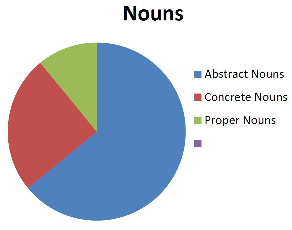 NOUNS: Are the nouns tangible or abstract? What categories of abstract nouns exist, such as those that pertain to events, perceptions, actions, moral values, and social attributes? What purpose do proper names serve in grouping nouns?