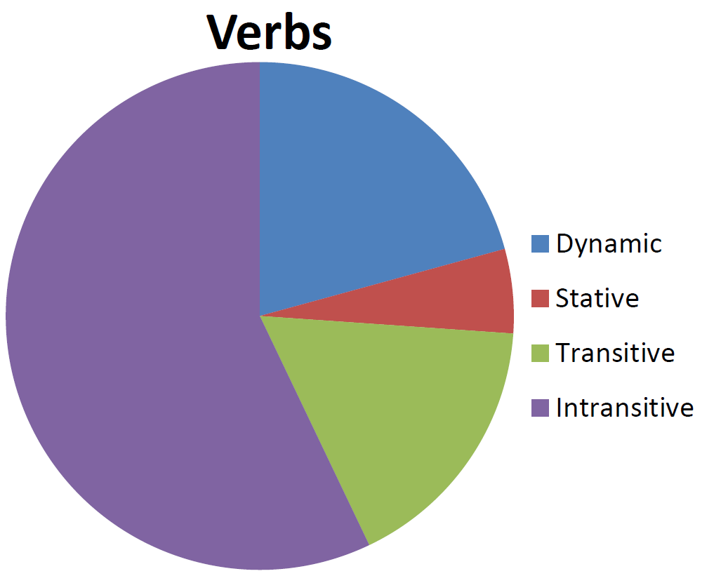 VERBS: Do the verbs contribute significantly to the meaning? Are they dynamic (relating to activities, events, etc.) or stative (related to states)? Do they'refer' to gestures, bodily actions, speech, psychic states or activities, perceptions, etc.? Are they connecting (intensive), transitive, or intransitive? Whether they are factive or not (iv).