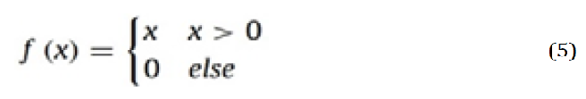 process, the activation function can be either sigmoid or ReLu. Equation 5 illustrates the behavior of the ReLu activation function [34]: