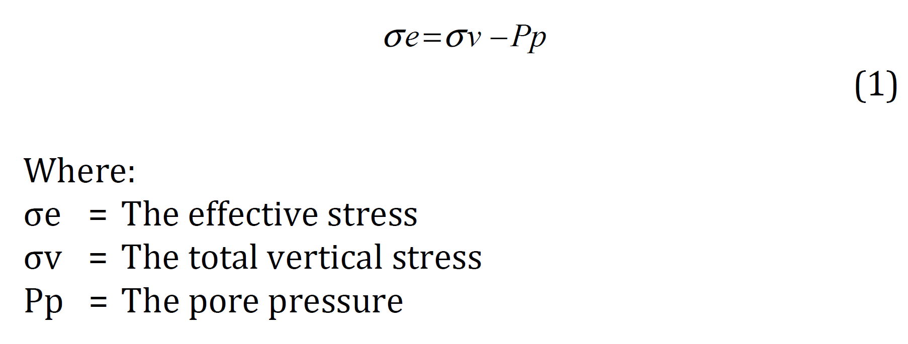 The stress state in salt formations is influenced by factors such as overburden pressure (σv), pore pressure (Pp) and tectonic stresses (σt). The effective stress (σe) is critical for assessing wellbore stability and is calculated using Terzaghi's effective stress principle: