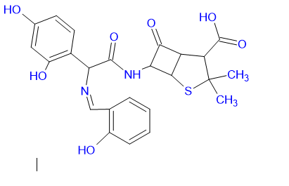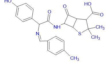 A mixture of (0.836 g, 2.0 mmol) of amoxicillin trihydrate in 15 ml of ethanol. Added 2.0 mmole of 2,4-dihydroxybenzaldehyde, and 4-methlybenzaldehyde was refluxed for 3 h. The precipitates collected, and washed twice with absolute ethanol, dried under vacuum and kept [11, 12].