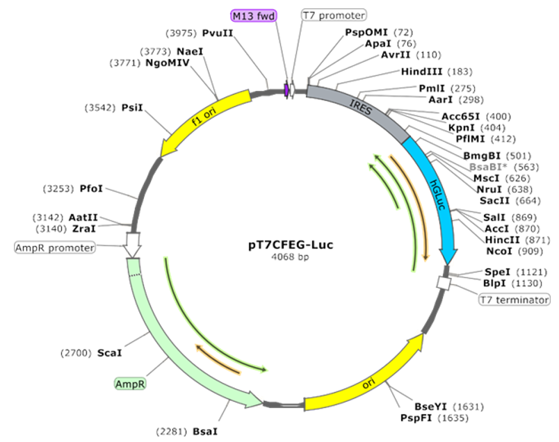 In vitro Transcription of Plasmid pT7CFEG-Luc