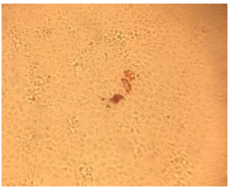 Figure 11: Detection of the viral capsid protein in MDCKII cells. Three MDCKII cells are shown in which viral antigen was detected after being transfected with 200 ng of HAstV-8 viral RNA at 48 h post-transfection. The samples were visualized in a bright field microscope with a 20X objective