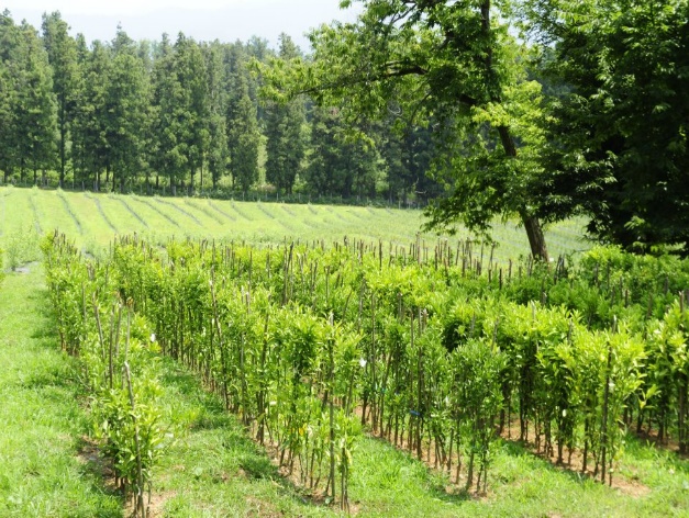 As far as rooting out of tea-plants, clearance of territories and cultivation of land require great expenses only small areas of the former tea plantations have been cleared and they have been replaced with other agro-cultivars, mostly nuts. In May, 2010 in Naruja (Ozurgeti Municipality) on the slightly slanting slopes (3-50) of the territory of the former Soviet tea plantation some bog whortleberry cultivars were planted (on 15 ha area), which brought in the first harvest (13 tons) in 2013. Cultivation of bog whortleberry is planned on the territory of the borough of Laituri (Ozurgeti Municipality) as well. (Fig. 7.).