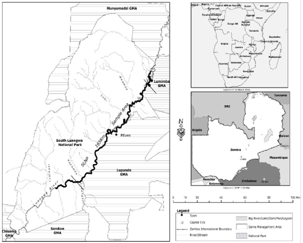 Figure 11: Location of Study Area Along Luangwa River and South Luangwa National