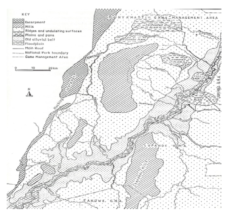Figure 6a: Details of the Physiographic Map of the Luangwa Valley, Zambia Showing the Alluvial Belt Which Supports Grassland Plains as Hippo Pasture.