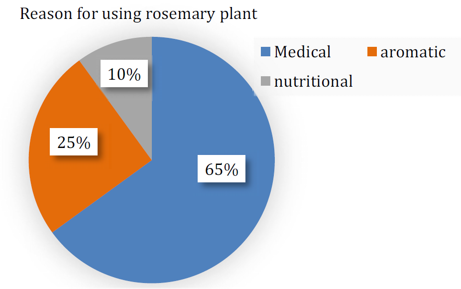 The numbers in the Table 3 show that the use of rosemary was highest for medicinal uses, at 65%, while its use as food was the lowest, at 10% (Figure 3).