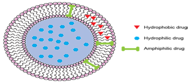 The niosome have hydrophilic head and hydrophobic tail sk the vesicle forming amphiphilic molecule. Polar heads facing hydrophilic region and non polar heads facing each other to form hydrophobic region (Figure 2) [3].