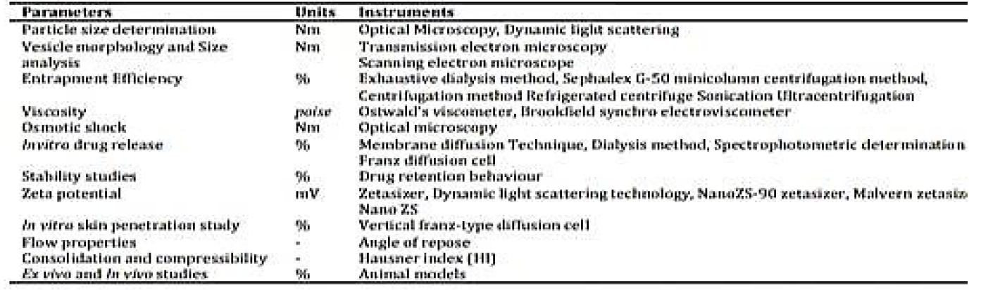 Table 2: Characterization Parameters of Niosome