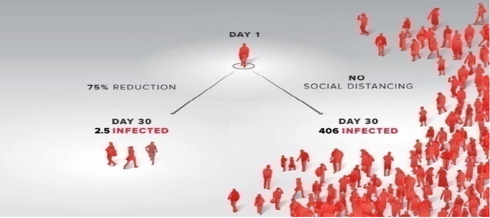 If we do not perform physical distancing or enact other measures to slow the spread of SARS-CoV-2, the virus can infect millions of people in a matter of a few months.4 Importance of Social distancing can be explained by mathematical model as below.