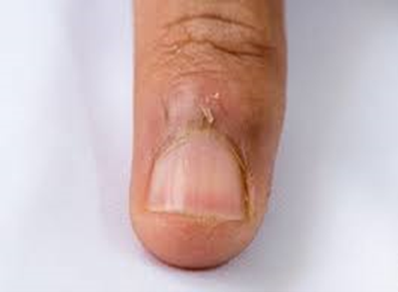 This is a condition where there is splitting and peeling off cuticle of nail due to overextension of the cuticles from the proximal and lateral nail fold (Figure 11). The area becomes sensitive and painful.