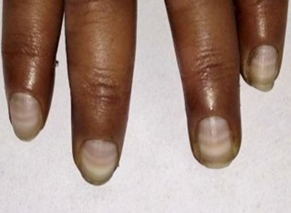 Human body is a wonderful creation of God. Each and every part of the body has its own importance. Not only internal vital organs but external parts are also playing their own important role for healthy living. From these external parts, nail is one the essential parts of our human body. Whenever, our body is facing any crisis at internal organ level due to various chronic disease conditions, it also reflects its disturbance on the external part. Systemic disease typically affects more than one nails. Fingernails usually provide more accurate information than toenails, because clinical signs on toenails are often modified by trauma [1,2].