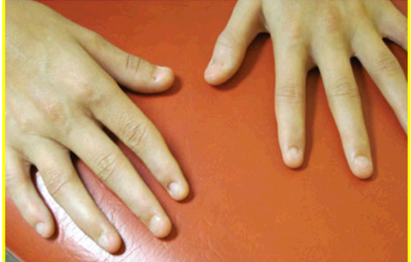 It is a condition where absence of nails of finger and/ or toes (Figure 6). This condition can be associated with congenital developmental anomaly, or congenital Ectodermal defect.