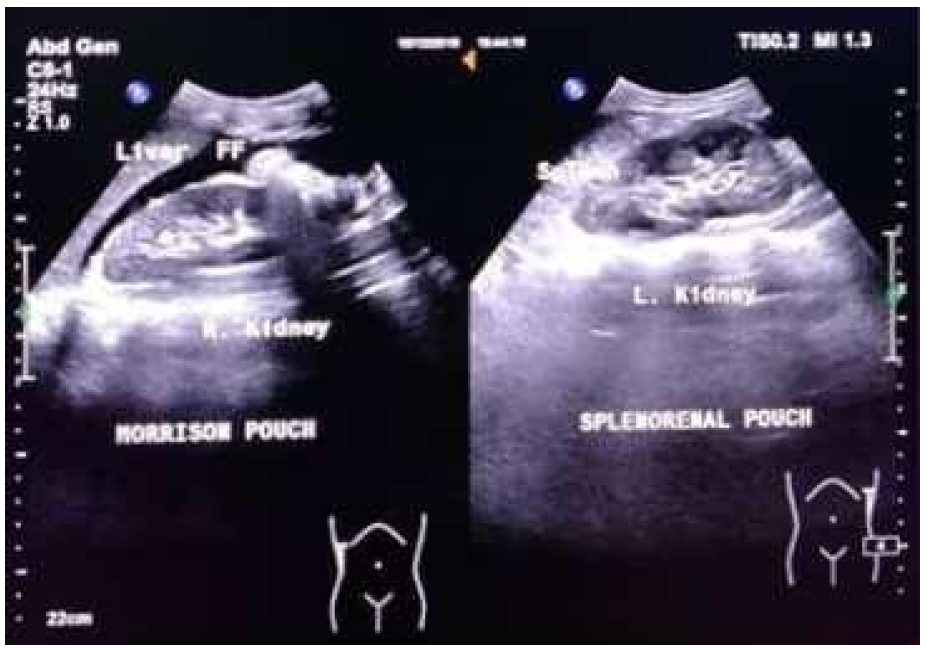 Figure 5: FAST Examination (+) on the Morrison Pouch and Splenorenal Pouch