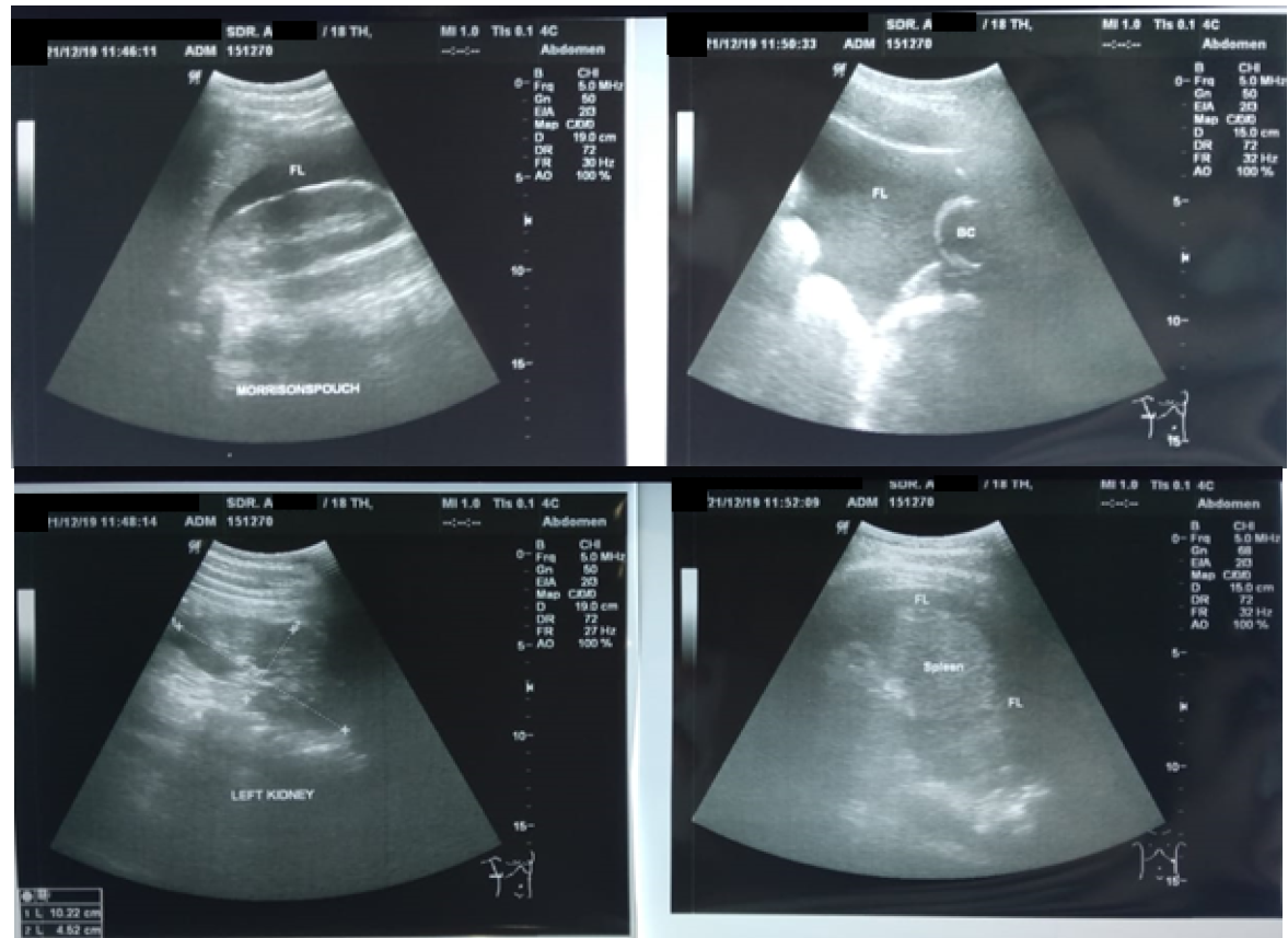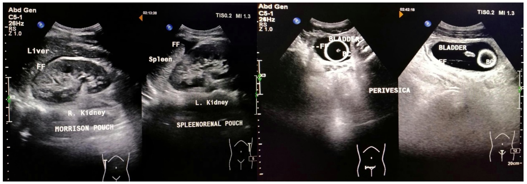Figure 3: FAST Examination (+) on the Morrison Pouch, Splenorenal, and Perivesical