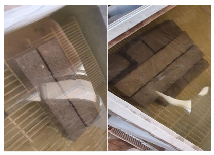 وبعد معالجة النماذج بالماء ولمدة 7 أيام لغرض اكمال عملية الاماهة، سيتم اخراجها من أحواض المعالجة وتركها في جو المختبر ولمدة 28 يوم من تا ريخ الصب لاكتمال نضج الخرسانة كما في الاشكل 14a و 14b.