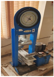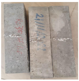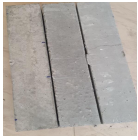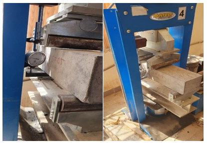 عينات موشورية بحجم cm( 10*10*50) تم صبها لحصول على الاجهاد الاقصى ومعامل التمز ق. تم اجراء الا ختبار في اليوم ال28 من صب النموذج، توضع القوالب في جهاز الاختبار على ركيزتين ويراع ي أن يكون كل من نقاط الارتكاز والتحميل بطول أكبر من عرض العتبة يجب ألا يكون السطح النهائي للعينة على اتصال بنقاط التحميل . كما في الشكل.15