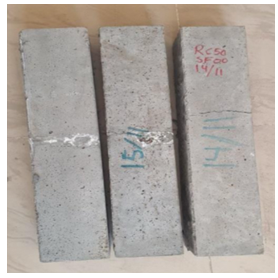 أظهرت النتائج أن سلوك الانحناء لجميع العينات عند الكسر كانت متشابهة الى حد ما، وقد حدثت التشققات للعينات الغير حاوية على الالياف فولاذية ف ي وقت اقل مقارنة مع العينات الخرسانية الحاوية على الالياف الفولاذية ولنفس نسب استبدال الركام. ان الخلطات الحاوية على الالياف الفولاذية Sf (بنسبة 1%) اظهرت أفضل مقاومة للانحناء من العينات الغير الحاوية على الالياف الفولاذية.