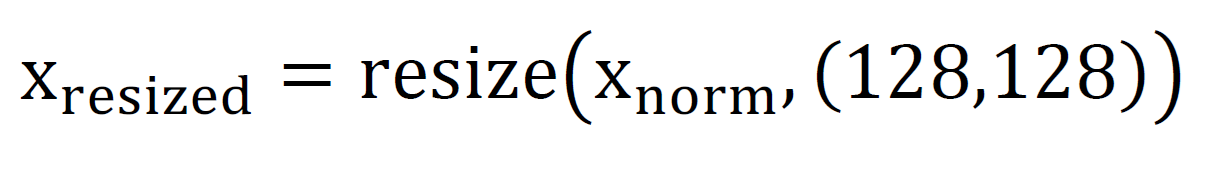 To prepare the dataset for the convolutional encoder layers, all images are resized to 128x128 pixels using bilinear interpolation (Eqn.). (2):