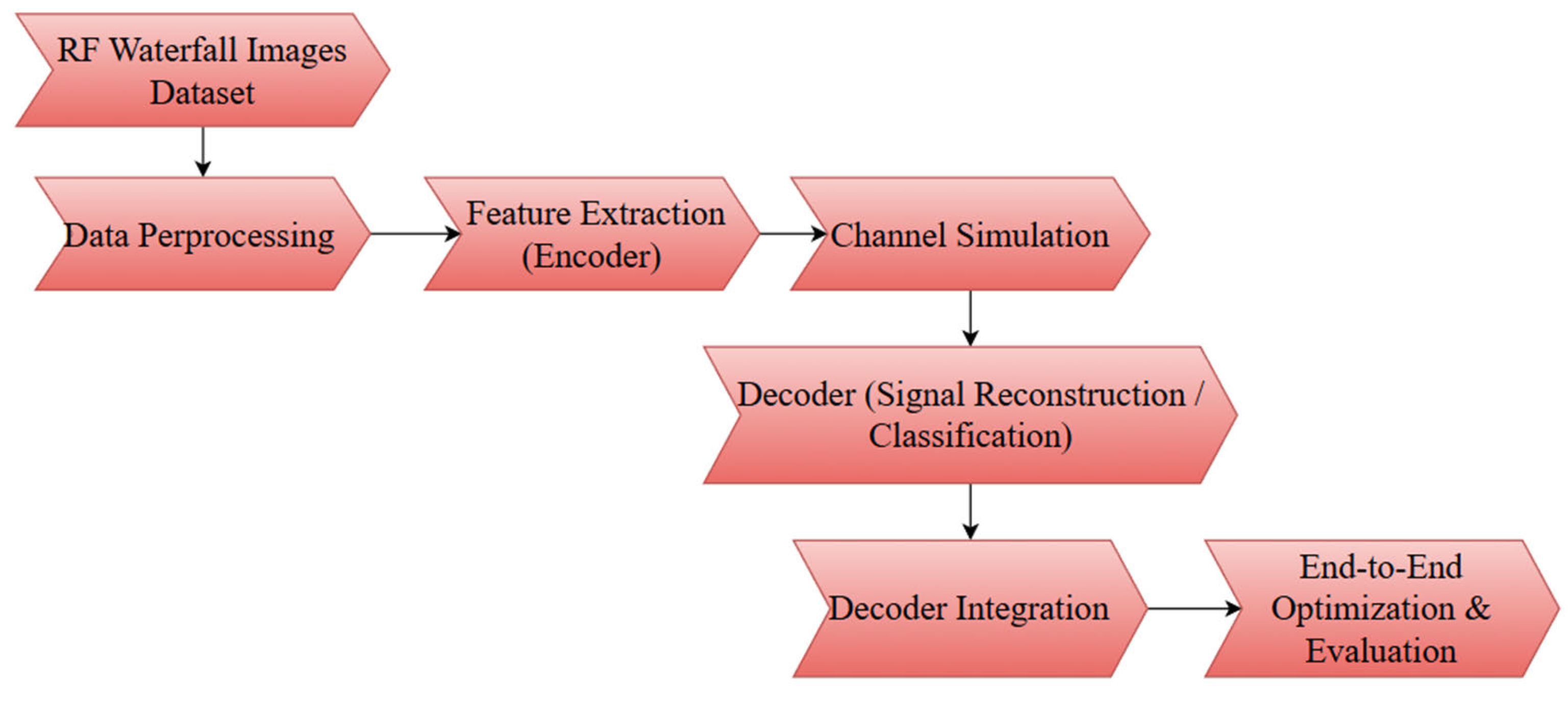 Deep learning–based communication systems require high-quality, representative datasets. This project uses Kaggle’s Radio Frequency (RF) Signal Image Classification dataset [19], consisting of waterfall images labeled with modulation serving as ground truth for classification and reconstruction. The dataset covers diverse signal-to-noise ratios and channel conditions, with balanced class samples and consistent time-frequency scales. Images are recent and reflect current RF scenarios. The encoder-decoder architecture, commonly used in speech recognition and synthesis, replaces traditional modulation and coding blocks, allowing the AI-native air interface to learn robust signal representations and reconstruct signals effectively.