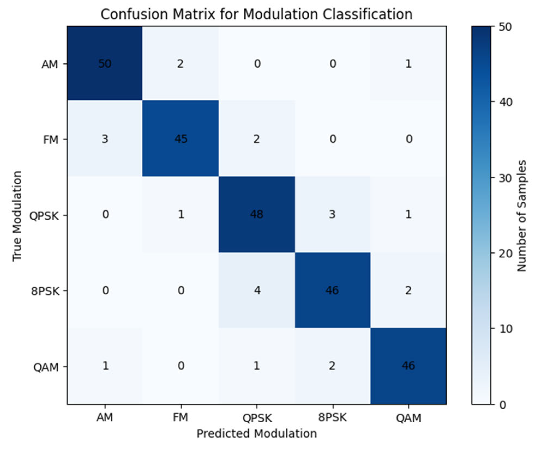 Confusion Matrix for Modulation Classification