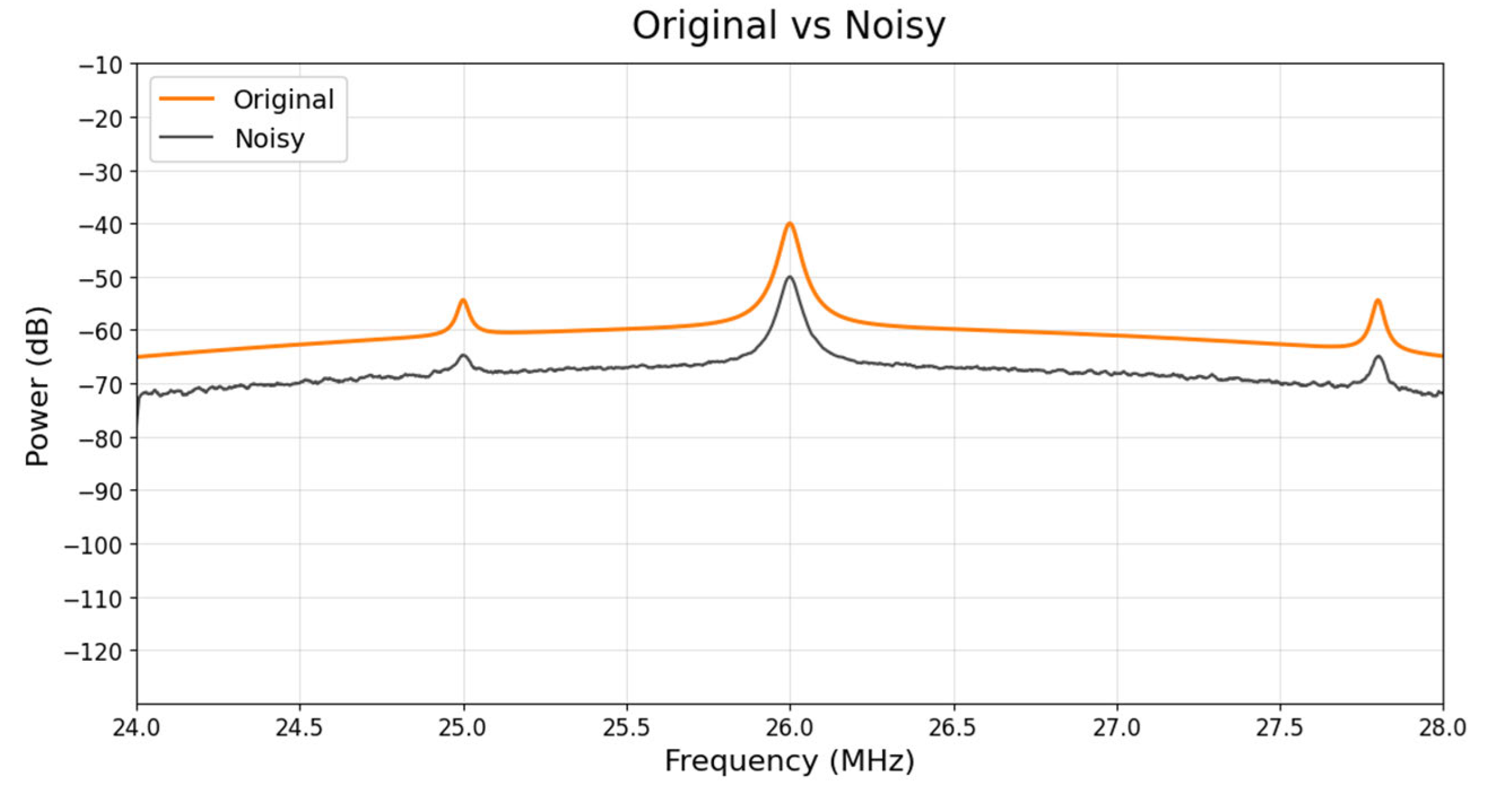 Figure 9: Original Versus Noisy RF Signal Spectrum Comparison