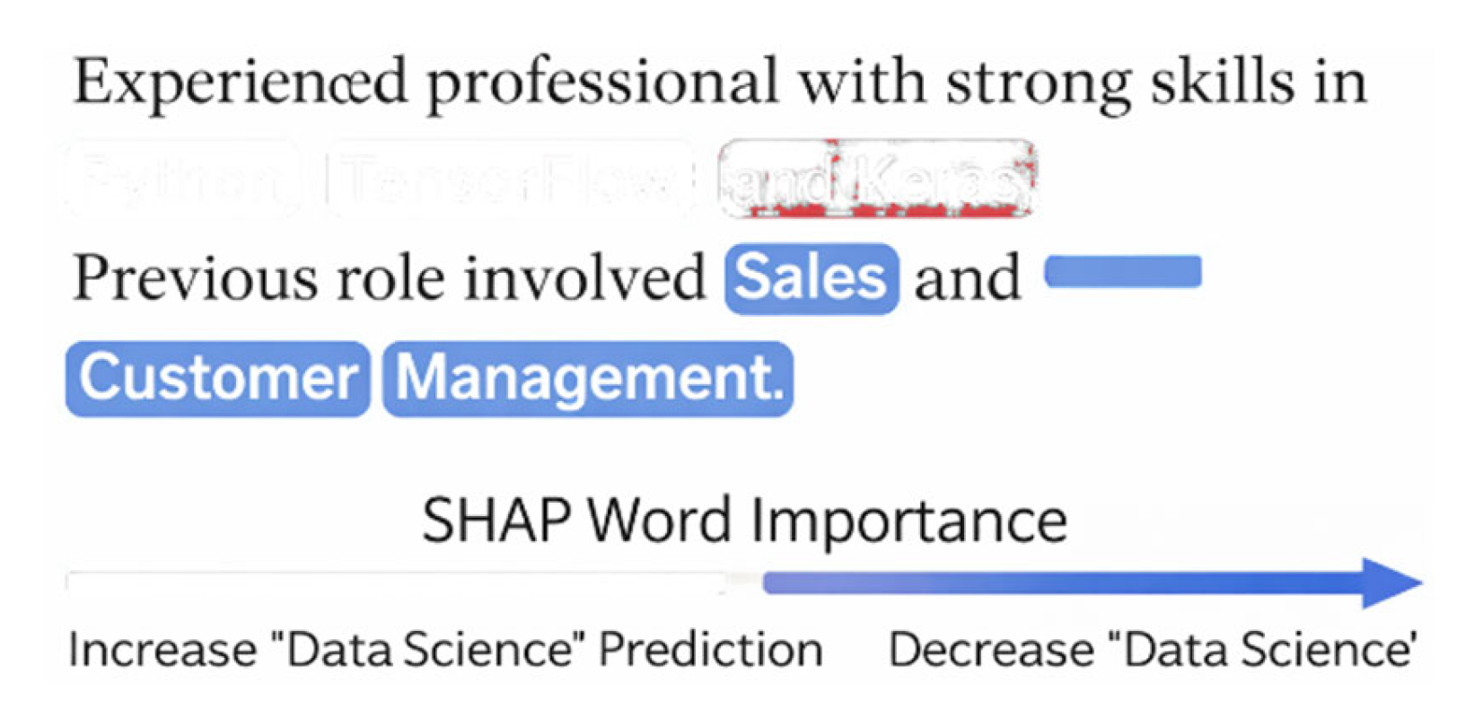 SHAP explains how the model is influenced by words; keywords are the keys to unlocking how it works. “Data Science” resumes would contain certain words that stand out-TensorFlow, statistical modeling, machine learning. Words in Functional Areas, say sales or customer service, would be virtually absent. This is because the non-technical weight is diminished. What’s left is what is critical-excesses are filtered away, emphasizing core competencies. This is what the model gives you directly, this is what helps us in fairness test. Recruiters feel empowered. This is seeing the results of intelligent craft.
