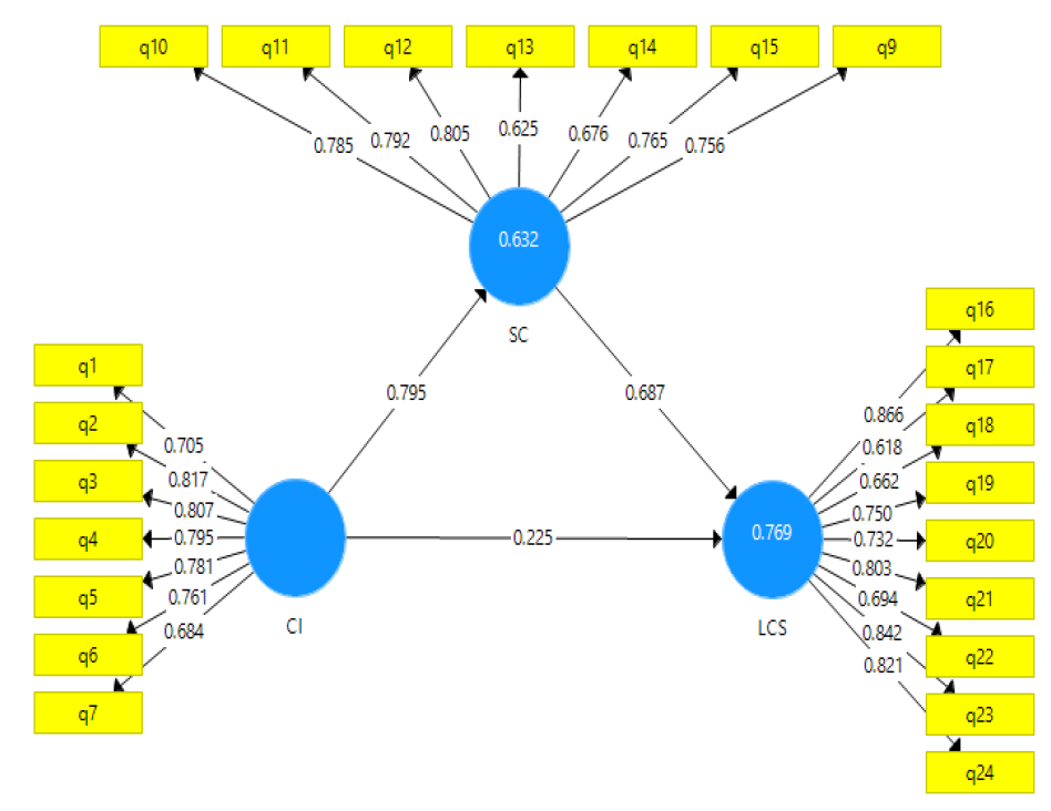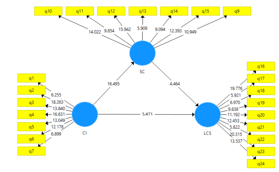 | CI -> SC | 0.795 | 0.048 | 16.495 | 0.000 |